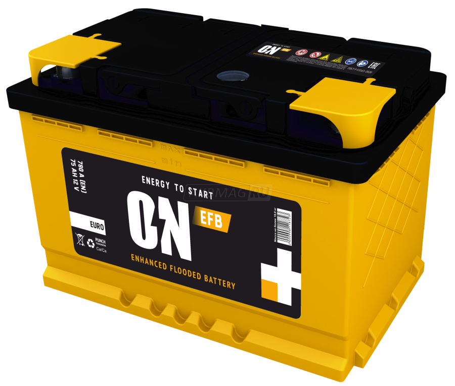 Аккумулятор автомобильный ON EFB 75R 750 А обр. пол. 75 Ач